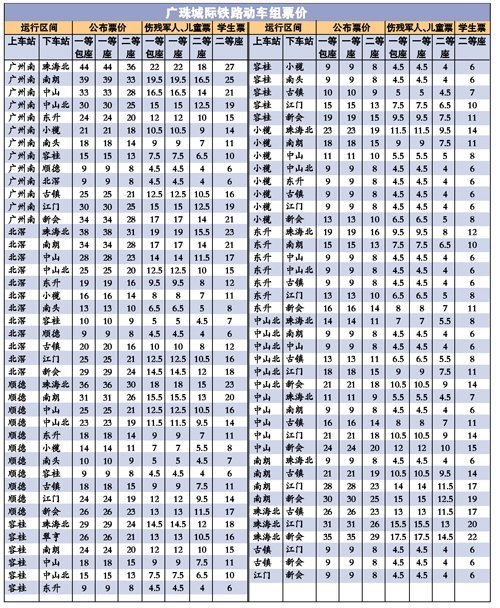 广珠城轨票价